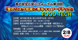 活動予定 食の安全と安心フォーラム第30回『食のリスク低減に寄与するフードテック』